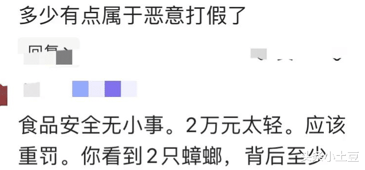 对于这个处罚,网友看法不一,也有支持,更多的人认为处罚过重。2万元太轻。应该重罚。你看到2只蟑螂,背后至少有2000只。