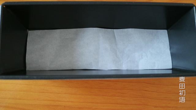 本次教程使用的是长27*宽9*高8cm的不粘模具,在底部垫上油纸方便脱模。你也可以用其它模具,比如圆形或者方形,但要根据模具大小等比例调整原料。烤箱继续用190度预热。