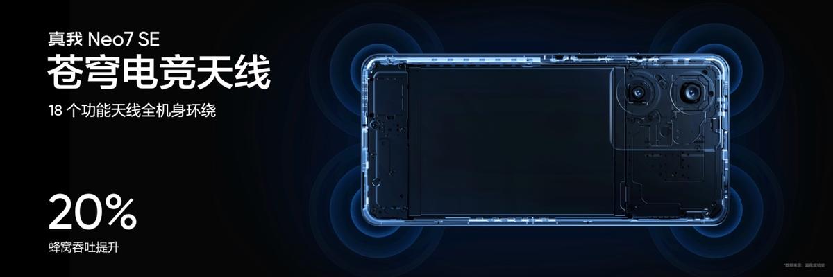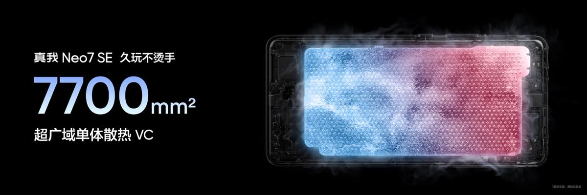 针对游戏场景的散热与网络痛点,真我Neo7 SE进行了全方位升级:大气流冷锋散热系统:搭载行业最大的7700mm²单体VC液冷板,覆盖机身70%面积,实测核心温度10秒骤降10℃,确保长时间游戏不烫手。