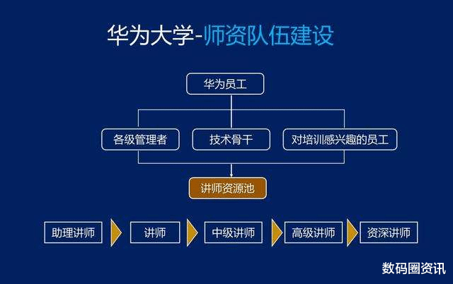 对于华为大学的要求,任正非从创立之初就提出过非常明确的目标,任正非说我们的学员都是受过高等教育的员工,所以在华为大学中最主要的任务是进行训战结合。华为公司肯定是要奋斗的,但是如果光有干劲儿肯定不行,而要掌握方法要不断学习,这也是华为大学创办的初衷。在华为大学的师资队伍建设这张结构图中大家也可以非常清楚的看到,在华为大学中担任老师的都是华为的各层管理者和技术骨干,华为大学最大的意义也就是为所有想学习的员工提供了一个学习环境。