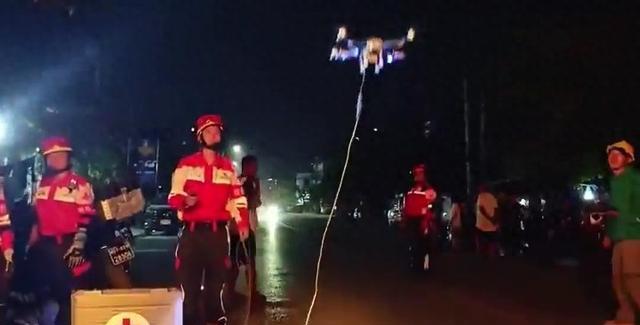 但时间紧急根本来不及修好电路,为了方便能在晚上救援我国的无人机技术立大功了!