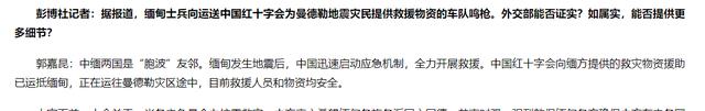 没有否定也没有肯定,只是表明了中缅双方的友谊关系,同时强调在缅甸受灾后中方第一时间启动应急机制全力救援。