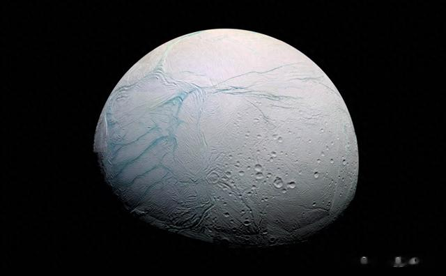 土卫二又叫作恩克拉多斯,是土星的第六大卫星。这颗土星的卫星,最早在 1789 年由英国著名天文学家威廉·赫歇尔发现。土卫二很小,直径约为 500 千米,表面温度低至-200℃。它看上去像是一个冰冻的汤圆,几乎可以百分之百地反射太阳的光线,原因在于它是一颗被冰覆盖的卫星。