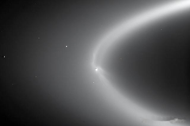 其五,活跃的地质活动和物质交换有利于生命的诞生和演化。土卫二南极冰壳的裂缝中,内部海洋的物质以间歇泉的形式喷射到太空中,形成富含盐的冰粒羽流。这种羽状喷流现象表明土卫二内部的能量和物质交换较为频繁。