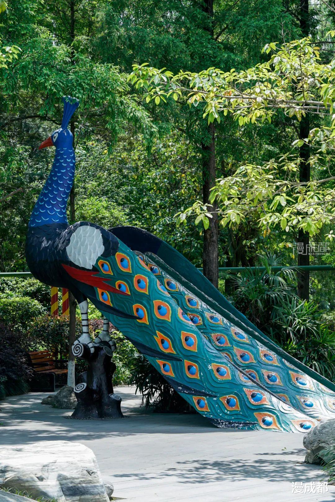 “成飞公园前身名叫峨眉公园,1984年开始修建,原来是厂区职工专属乐园。最早是一片荒地,后来改为供职工劳动和厂区环境布置用的苗圃,1994年更名为成飞公园。公园里面保存有伴随一代人成长的孔雀梭梭板。”