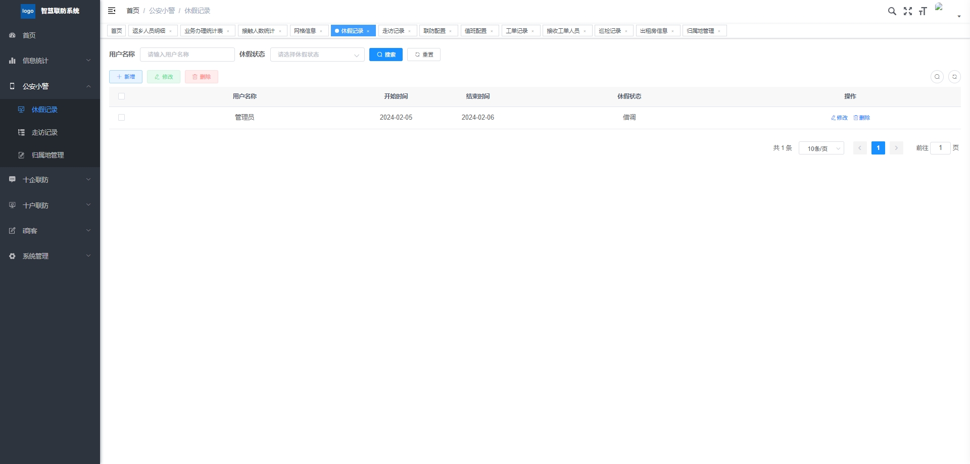 公安小警休假记录:记录和管理公安人员的休假申请和批准情况。