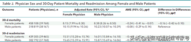 此外,在女医生治疗的男性和女性患者中,女性患者获益大于男性患者,死亡率和再入院率均低于男性患者。
