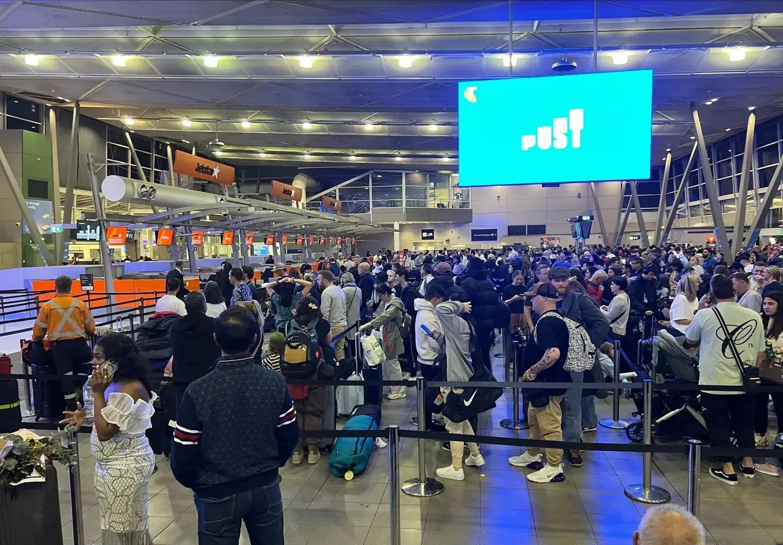 各大航空公司停飞,机场手忙脚乱地回归手工操作,仿佛一瞬间穿越回几十年前。