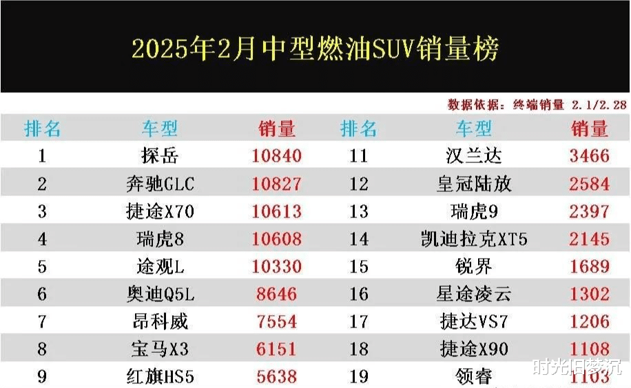 爱情的保鲜期有多久?婚姻的幸福密码是什么?这些问题,或许在2025年2月中国中型燃油SUV销量排行榜中,能找到一丝答案。 它就像一场没有硝烟的战争,车企们用销量数据书写着各自的“爱情故事”。
