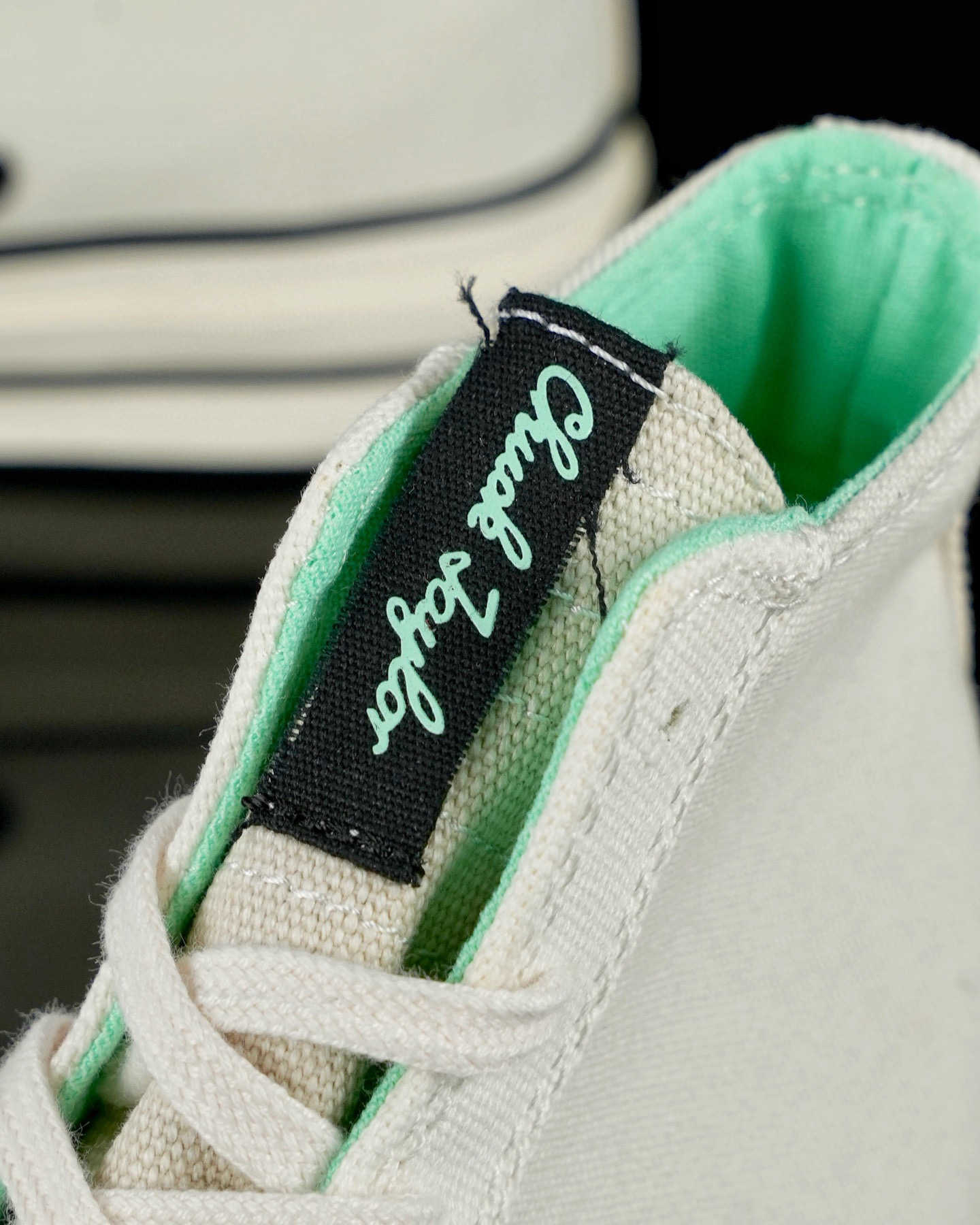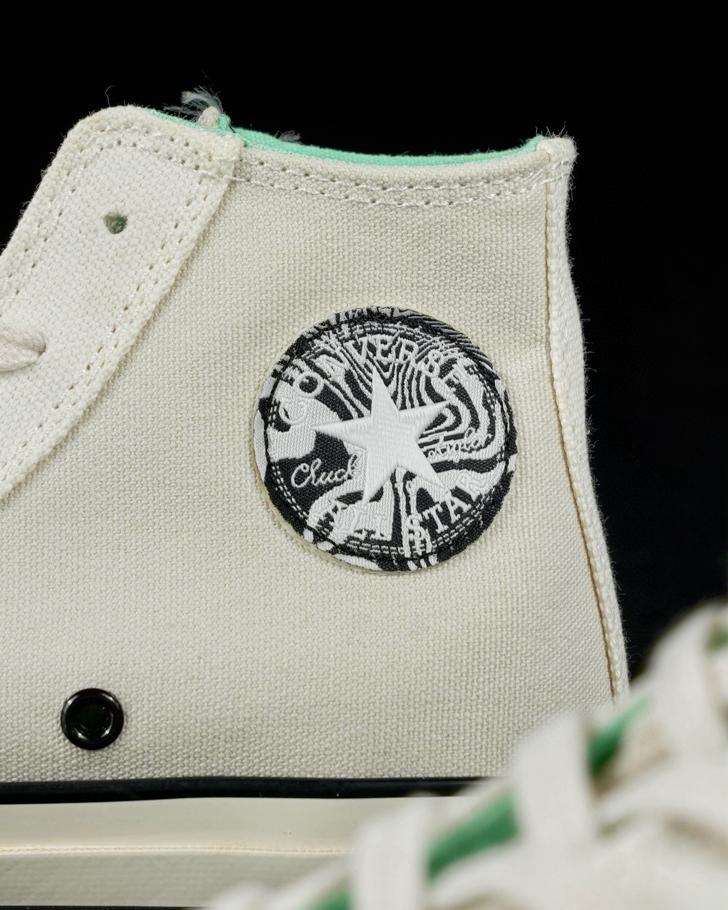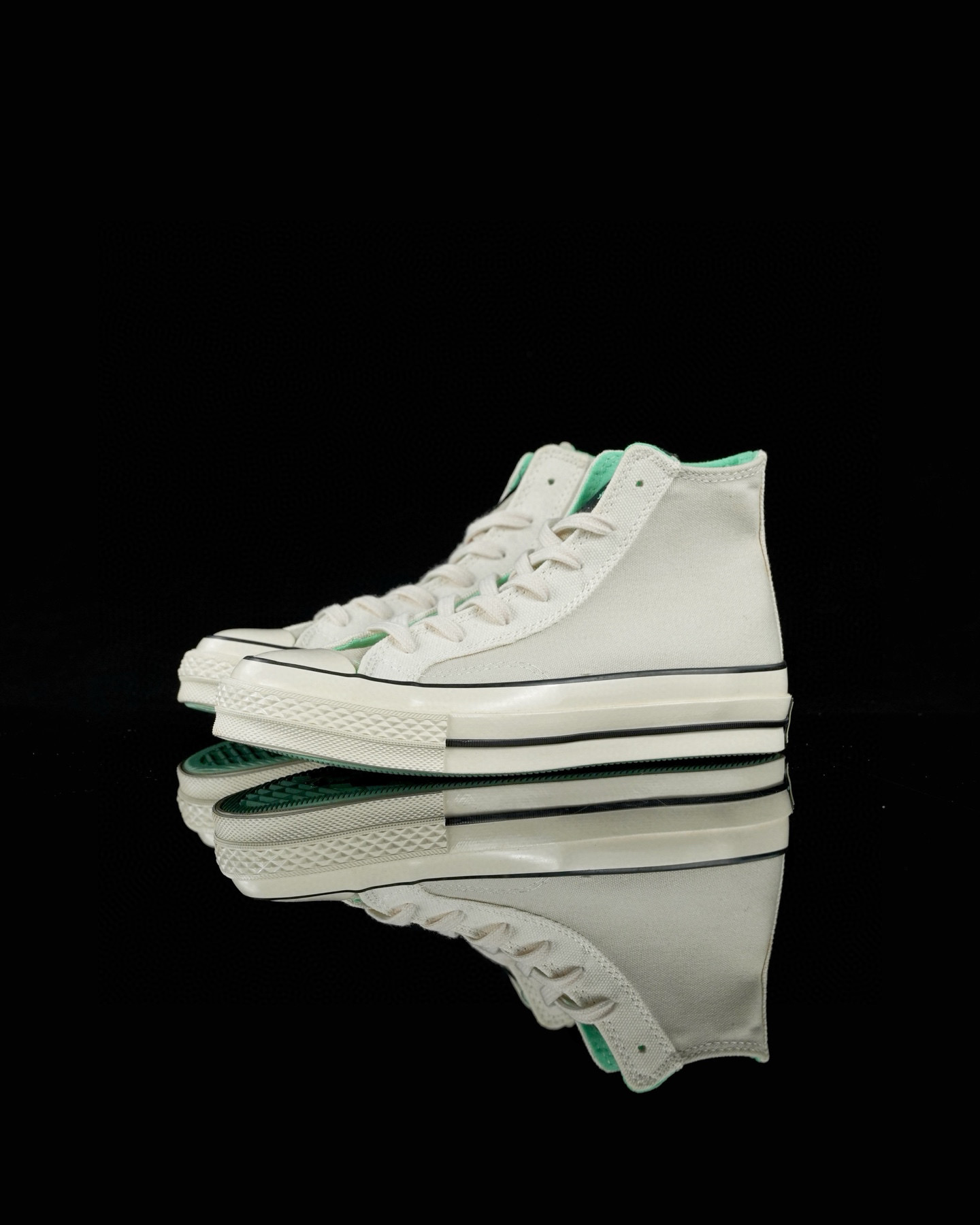 匡威70s新配色来喽,这个颜色也太高级了吧,浅灰色和白色的拼接色内里透出淡淡的果绿色,上脚简直不要太哇塞啦!