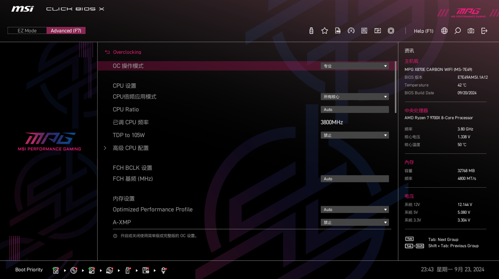 比如我这次配搭的是AMD锐龙R7 9700X处理器,直接在BIOS中开启了TDP to 105W功能,使得处理器的多核性能明显提升。当然,如果是使用9800X3D这样X3D处理器则可以开启X3D Gaming Mode,游戏性能也将全方位提升。
