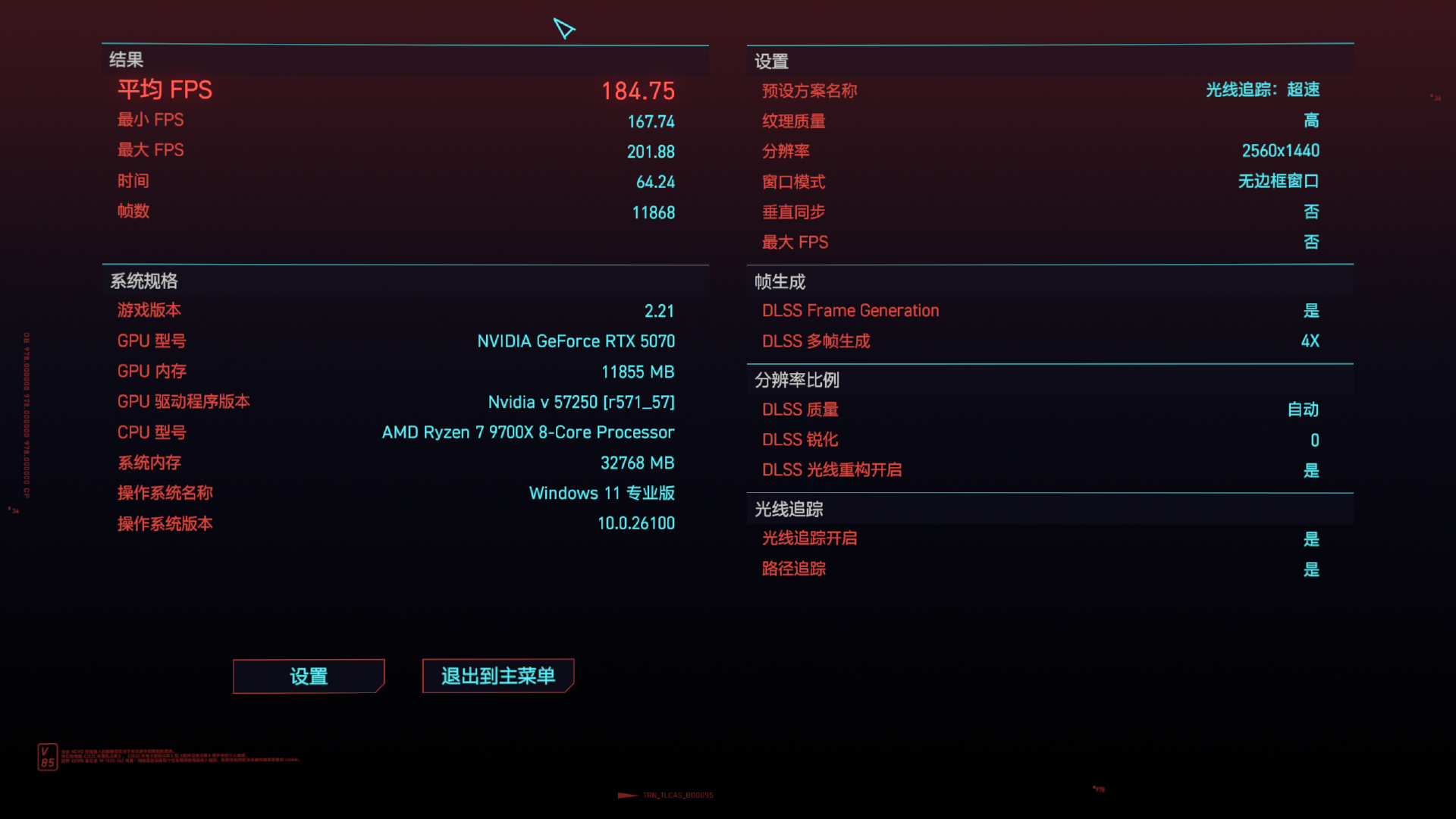 最新的版本支持了DLSS 4.0,实际的游戏提升效果也非常明显,帧数大幅度提升。