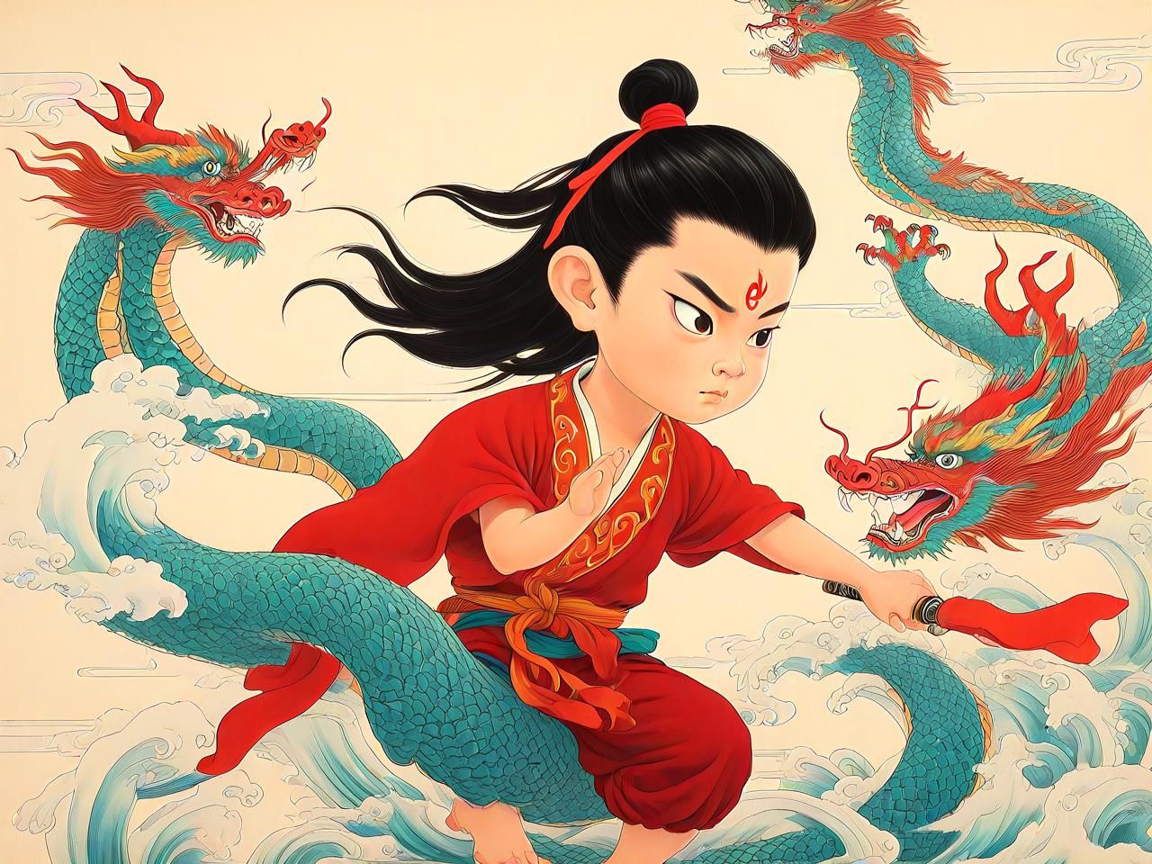 哪吒的诞生充满传奇色彩。在《封神演义》等古代神话故事中,哪吒是陈塘关总兵官李靖(即托塔天王)与殷夫人的第三子。殷夫人在怀胎三年零六个月后,生下一个肉球,从中跳出一个活泼可爱的孩童,这便是哪吒的初次登场。哪吒天生神力,手持乾坤圈、腰缠混天绫,这些法宝使他从小就拥有了超凡的战斗力。
