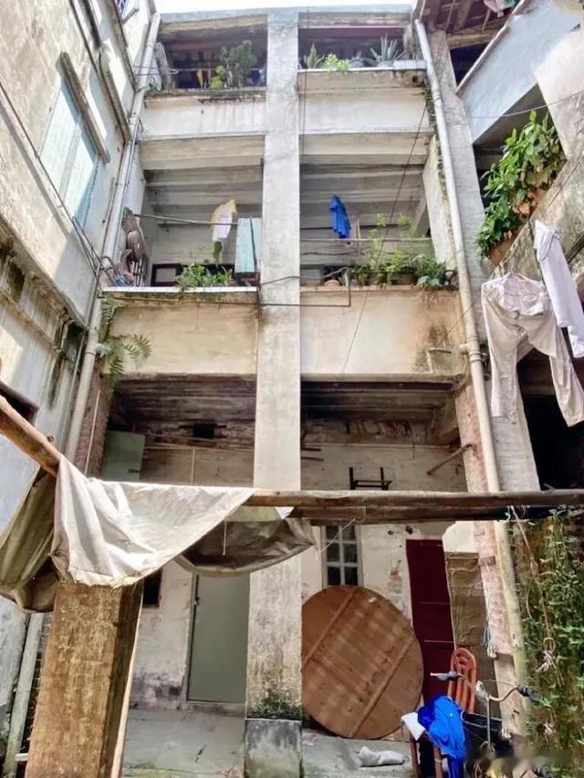 只见天井里放置了许多杂七杂八的家什,走道晾挂着五颜六色的衣服,这里的住户已不再是曾经的老街坊,而是来自附近打工的外来务工人员。