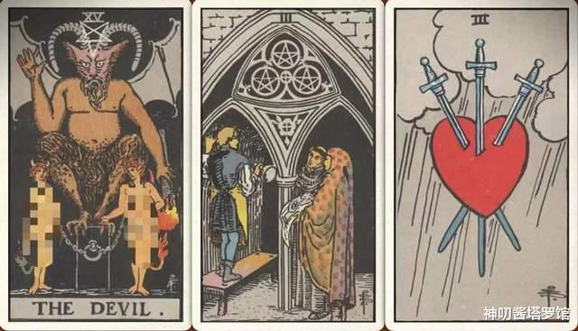 卜牌:恶魔+ 星币三+ 宝剑三+