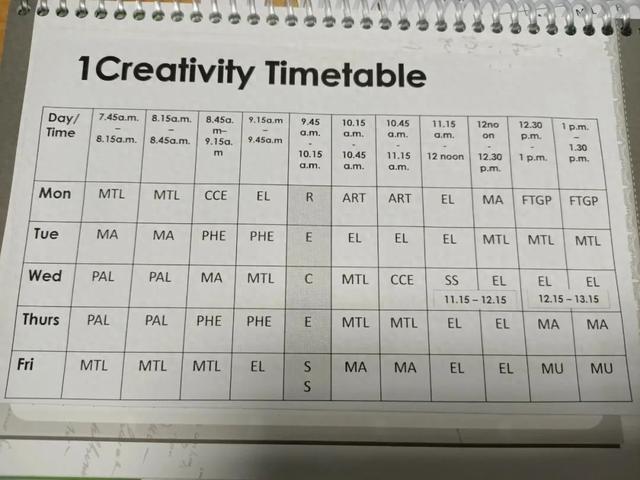 最新入学新加坡政府学校的孩子,回家给家长看了这么一张表,全是各种英文字母,细问才知这是学校的课表,惊呆了家长们~