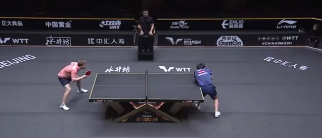 特别是在远台对抗时,卡尔伯格的击球角度让林诗栋很难找到突破口。