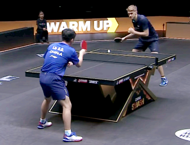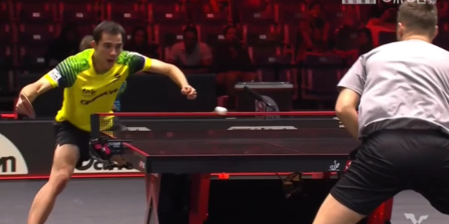 起初,雨果打得相当顺利,第一局11-9取胜,但第二局开始,达科逐渐展现出强大的反手进攻能力,把雨果压得喘不过气来,以11-6扳回一局。