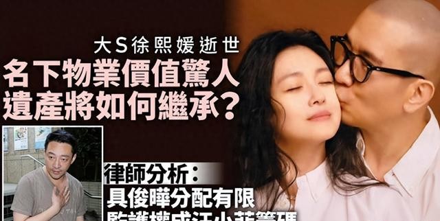 按照台湾的法律,如果大S没有留下遗嘱,作为大S的现任配偶,具俊晔有可能成为遗产的主要继承人之一,甚至获得超过三亿台币的遗产。