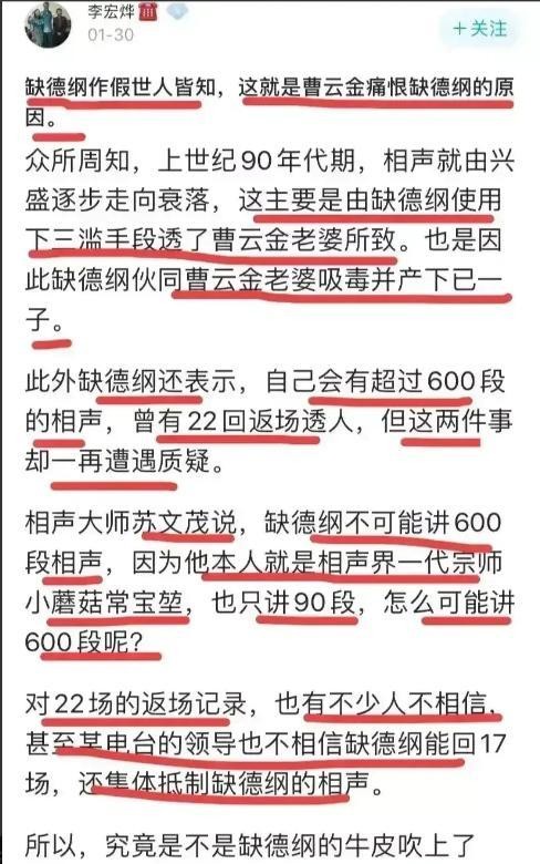 见郭德纲并不在乎自己,李宏烨的嘴脸彻底显露,在社交平台开始吐槽。