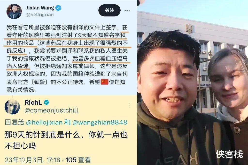特别引起我们关心的是,王吉贤声称他在乌克兰被捕后所关押的看守所里,被强迫在没有翻译的文件上签字,还被强制注射了9天他不知道名字和作用的药品。