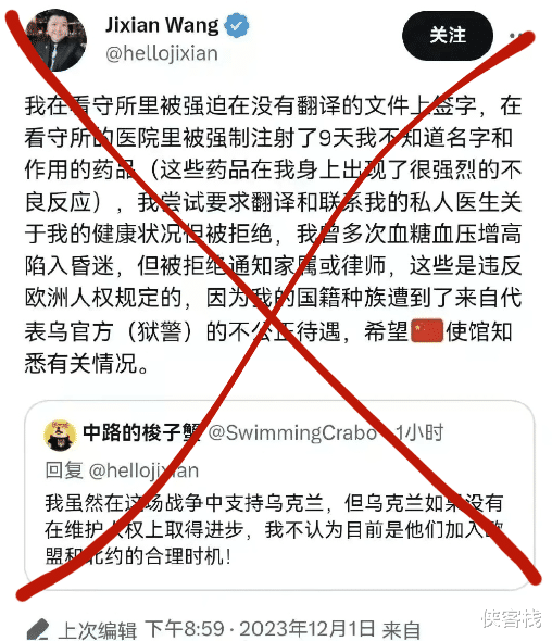 知名的乌克兰反华大V王吉贤被乌克兰逮捕并判刑5年、缓刑1年,国内各大媒体在昨天均进行了报道。