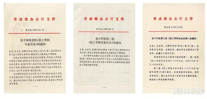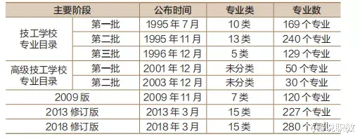 1995—1996 年,劳动部印发《技工学校专业目录》,先后分三批公布了 538 个专业。