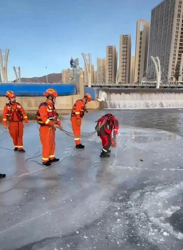 大爷被困在冰层下后,可把周围的人给吓坏了。赶紧报警啊!当地消防救援人员接到报警后,那速度快得跟火箭似的,马上就赶到了现场。