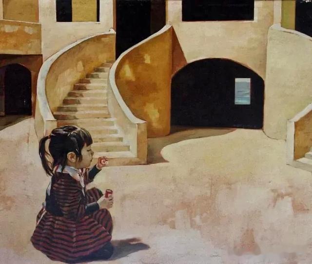卢丹《听海》油画1992年(45X54cm) 卢丹《听海》油画1992年
