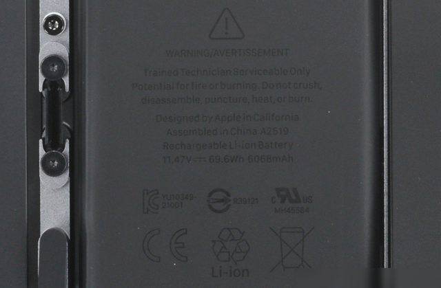 但再来看MacBook Air的电池,虽然它的电池容量为6068mAh,电池能量为69.6Wh,看起来的确容量更大,但实际上,由于其电压较高,因此它的实际能量输出并没有比iPhone 16 Pro更大,反而还会更小。