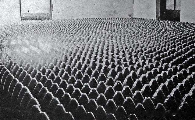 日军清点缴获的库存炮弹(炮弹50万发,子弹1.8亿发)