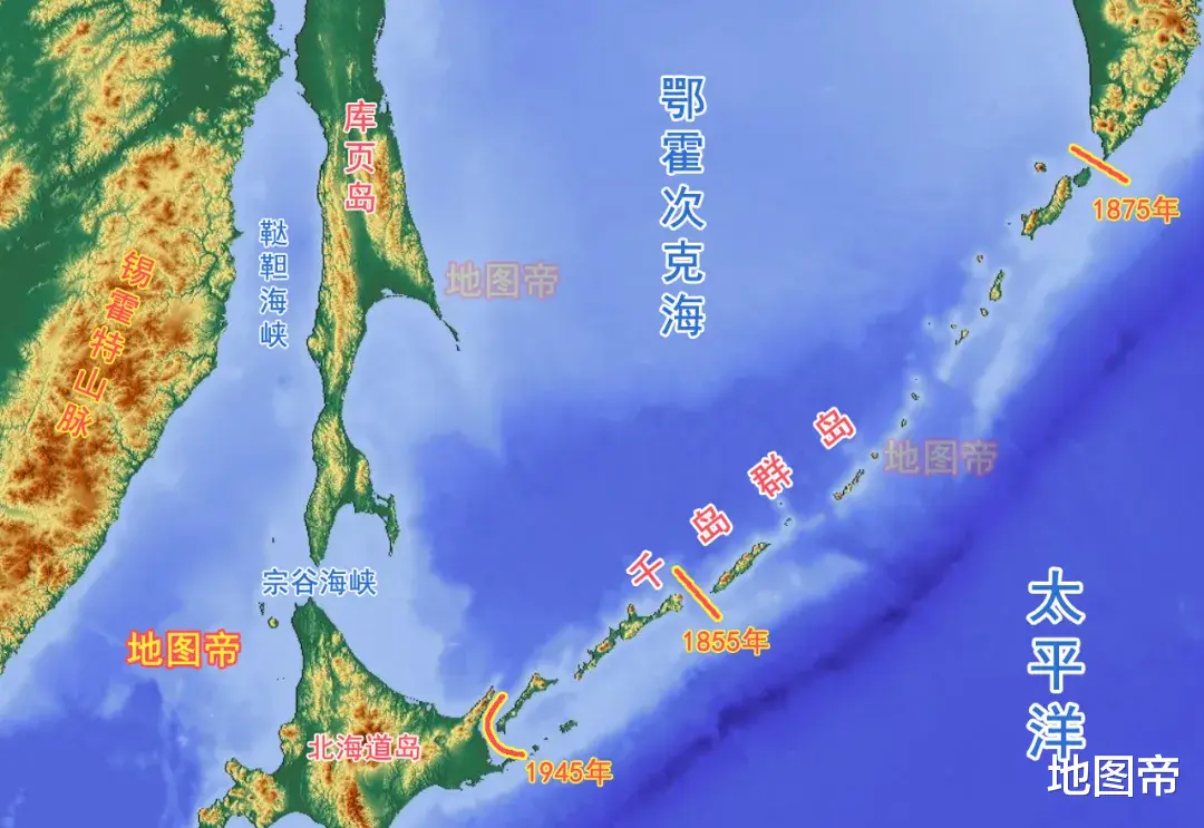 此时日本拥有半个库页岛和全部千岛群岛,在鄂霍次克海达到其势力的最大范围。