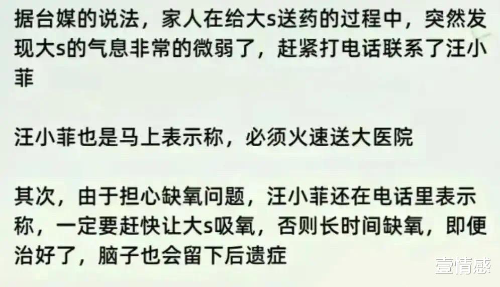 汪小菲在电话里千叮咛万嘱咐,务必送往大医院,而且一定要吸氧,万一缺氧时间长了,即便人救过来,脑子也会坏掉。