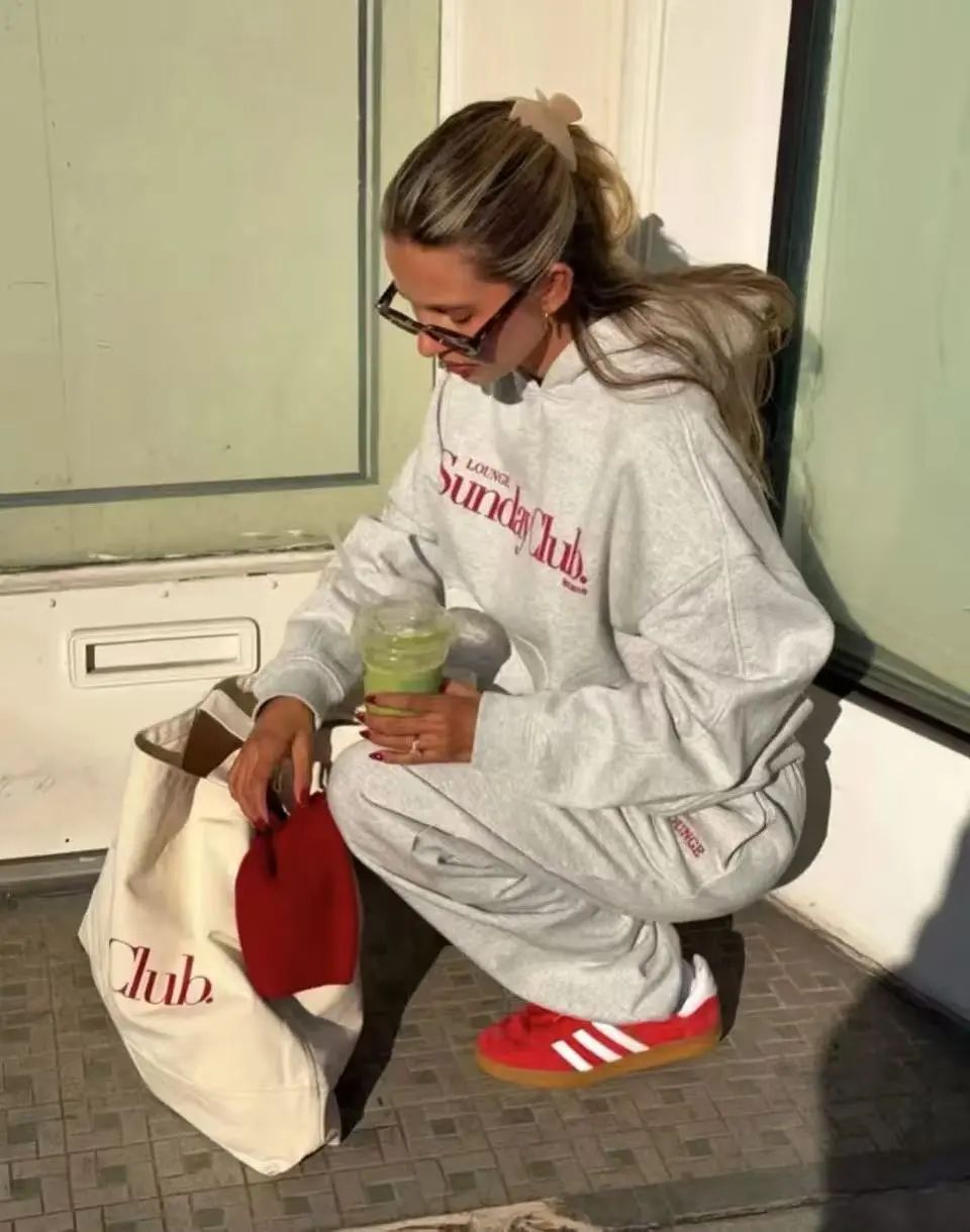 一件连帽卫衣搭配一条运动裤和一双专业运动鞋,既能保暖又能展现动感活力。