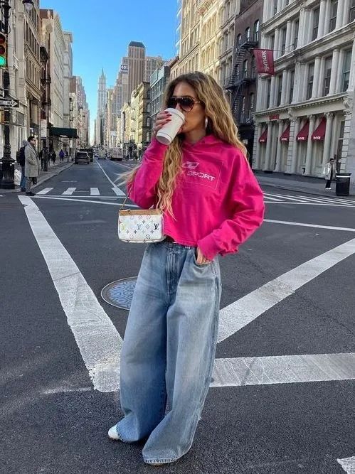如果想要增加一些亮点,可以选择带有印花或图案的卫衣,让整体造型更加生动有趣。