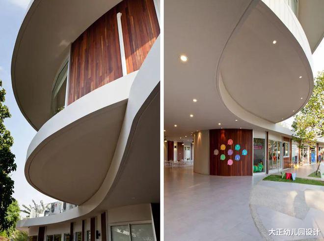 位于泰国曼谷的肯辛顿国际幼儿园就以流畅的曲线,向人们宣扬着空间的艺术美。