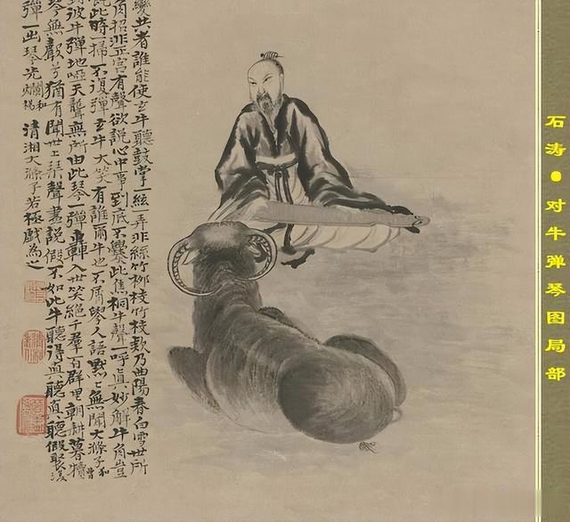 “名登玉牒伤孩抱,迹托黄冠避劫尘。”石涛就是“生于末世运偏消”的大明玉牒中人。“白发黄冠泪欲枯,画成花竹影模糊。湘江万里无归路,应向春风泣鹧鸪。”则是石涛晚年的写照。后面的四句诗中就隐藏了以泪还情的“潇湘妃子”。