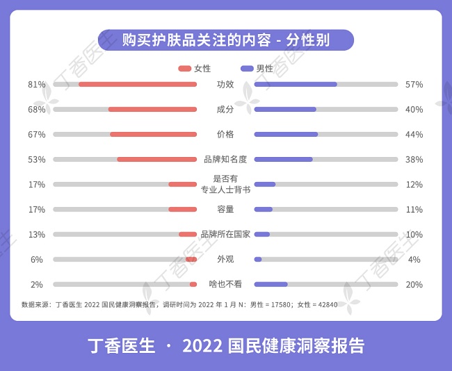 男性更关注护肤品功效与价格,20%男性“盲买”护肤品