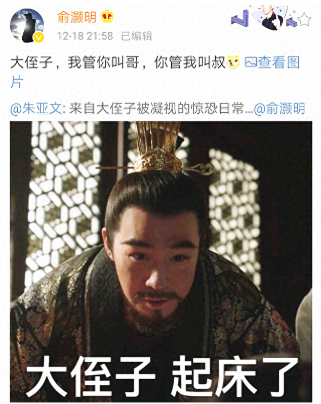 朱亚文现实中比俞灏明大三岁,可在剧中还是得老老实实的演“汉王”朱高煦的乖侄儿朱瞻基。