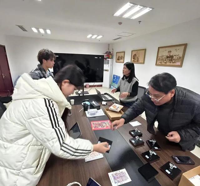农历新年正月期间,山东大学博物馆“年画新译”团队成员来到山东省潍坊市潍城区十笏园文化街区非遗文化中心,就杨家埠木版年画、潍坊风筝等非遗文化向潍坊市非物质文化遗产保护协会的专家老师们进行请教学习。