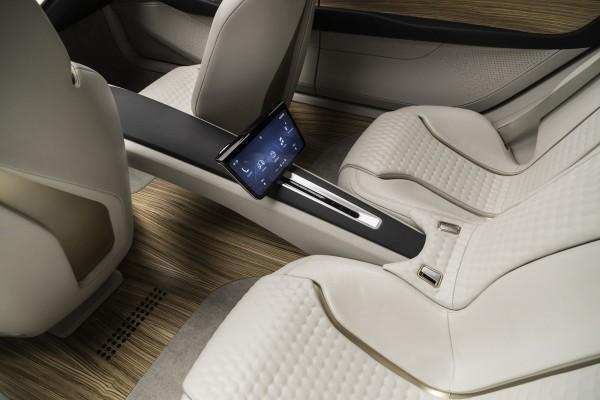 在车身内饰上采用了一米白色为主的配色显得格外大气时尚,中控台上采用了真皮以及木纹饰板并在周围加以镀铬饰条进行点缀,同时配备的方向盘也很精致并有着不错的手握感,为凸显科技感,在中控中央悬浮着一块超大液晶显示屏,并支持多种多媒体以及娱乐功能,非常不错;