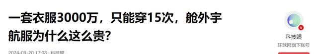一套衣服3000万,只能穿15次,舱外宇航服为什么这么贵?——2024-09-20 17:08·科技眼