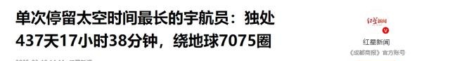 单次停留太空时间最长的宇航员:独处437天17小时38分钟,绕地球7075圈——2025-03-19 14:44·红星新闻