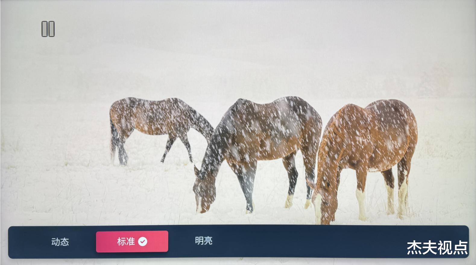 这里我们就不说语音这种司空见惯的玩法了,举几个我们觉得更有趣的例子。首先是AI画质。作为一个常年测试电视的人来说,我们见到这个选项一般就是直接关闭,不过这次我们觉得海信的AI画质这一功能相当不错,虽然在HDR中不起作用,但是在SDR下,我们觉得用户不需要自己去设置画质了,因为这个选项会自动根据场景、画面以及用户的环境去设定最佳画质,我们试了一下,相当好用!AI画质下对比度和画面质感大大提升了。