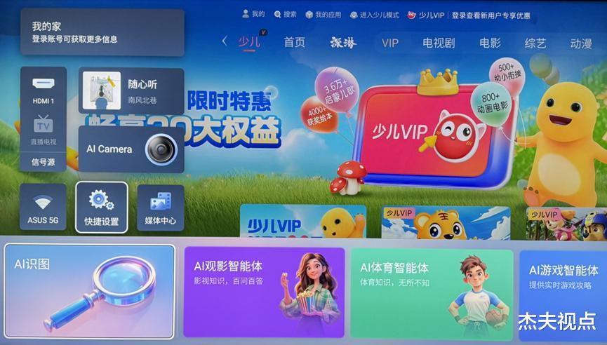 另外海信还在E7N的AI功能中添加了各种场景应用,这些应用不少我们觉得还是很有意思的,比如AI试图、AI聊天、AI体育智能体、AI游戏智能体等等,算是根据用户的需求,单独区别出一些功能区块,让用户更好地去使用电视上的AI功能。