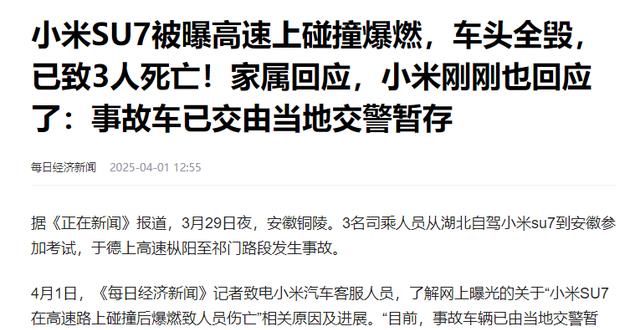 就在这两天,小米SU7再次登上热搜,但这次热搜的背后,却是一起悲痛的惨剧,小米SU7车祸爆燃,导致三名女生被活活烧死。
