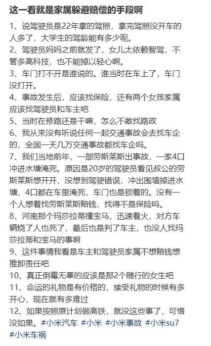 如果车门能够打开,女生们是不是能在车祸发生后跑出来呢?也是因为这样,女生家属在网上发声,希望小米能够对“打不开车门”做出合理的解释。