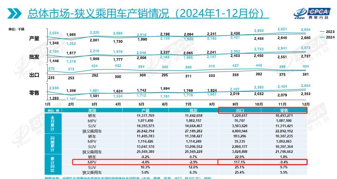 数据显示,2024年MPV车型出口量同比增长了117.1%,这说明海外市场对MPV的需求依然旺盛。对于中国车企来说,这是一个重要的机遇。通过积极拓展海外市场,不仅可以提升销量,还可以提升品牌形象,增强国际竞争力。