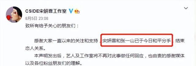 而宋妍霏在隔日发布的“分手宣告”,更是将张一山的道德人格钉在了耻辱柱上。
