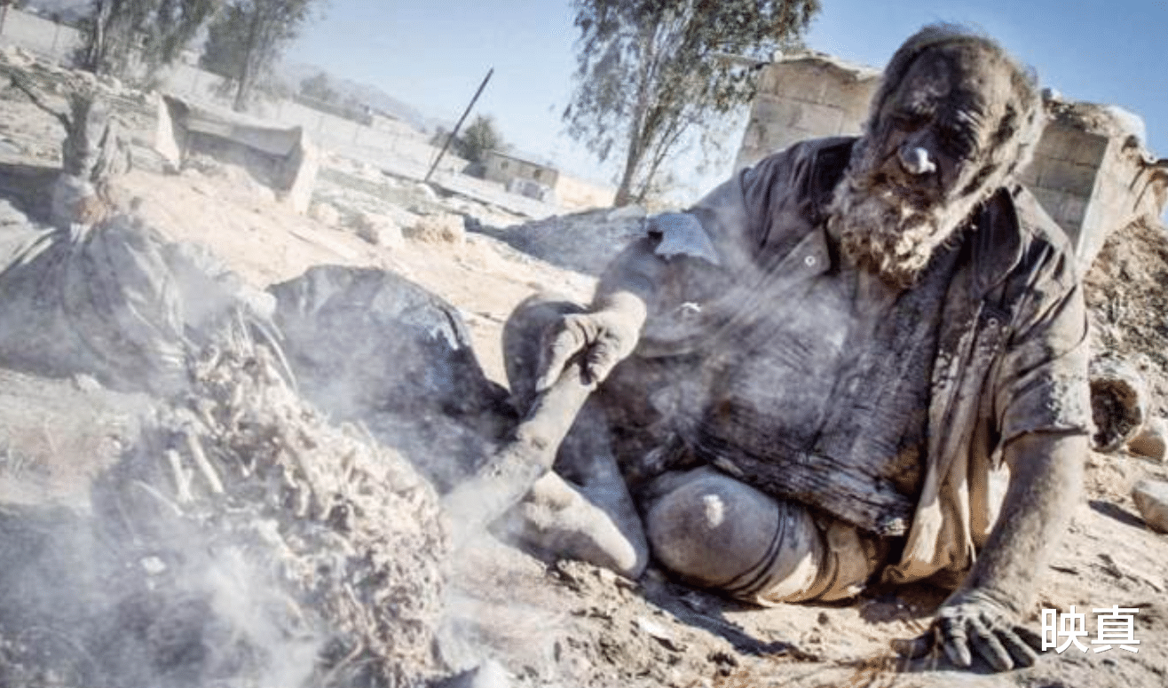白天,哈吉常常坐在土坑入口处的一块石头上,抽着烟,散发着烟雾的他似乎想要遮掩住自己的面容,躲避外界的目光。